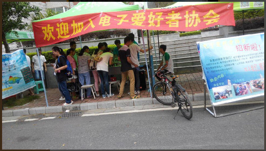 在2015年9月初,我们电子爱好者在青春广场召开了新会员招聘大会,报名情况非常乐观,这留给了我们更多的选择,为我们电子爱好者协会的美好明天奠定了基石。在我们的招新工作中,我们欣慰不已,因为我们可以从这批会员的身上找到朝阳般的活力,我们可以感受到他们每一个人心中的激情以及对本组织的热爱。因为在以后的日子里,我们电子爱好者协会组织相关的一系列活动,所以,为了电子爱好者协会的不断发展壮大,就以往而言我们不得不考虑到报名者的精神,本组织是为社会服务,为学校的师生服务,是不求回报的付出,只有心底诚心诚意想为社会做事的人才会全心全意地付出,为电子爱好者协会出一份力,为社会出一份力。只有这样的人才不会半途而废,也只有这样的人才能使我们电子爱好者协会不断发展壮大。
