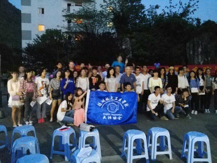 2015年4月16日下午18:00,英语协会在九栋宿舍楼前小广场成功举办了以“What makes you happy”为主题的英语角活动。桂林市英语角理事会副会长王洪齐、外语系外教、各大校级组织和兄弟社团代表人员、外国友人以及校内外的英语爱好者参加了本次活动。