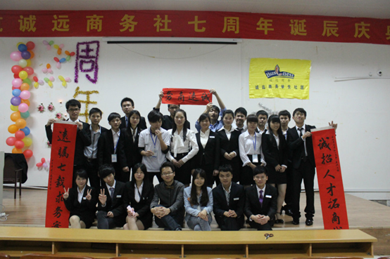 诚远商务社于2014年4月26日晚19:00至21:30在学校一号教学楼1423教室举行了七周年庆典晚会,在协会干事和全体成员的带领下顺利开展了这一庆典活动。