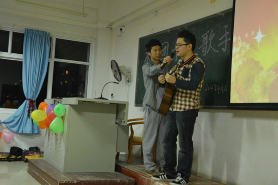 4月26日19:00创英营销实战协会和市场调研中心协会在1307联合举办了“十佳歌手”活动。出席本次活动的嘉宾有社联代表余靖和一系学生会副主席黄当津。
