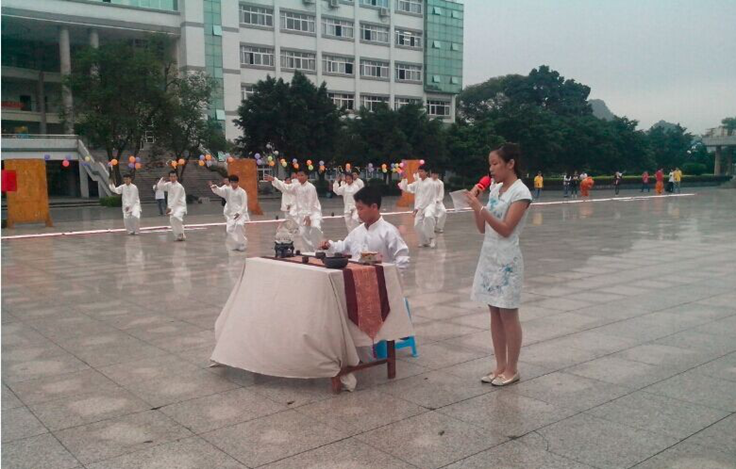 伴随鼓声和掌声,活动在舞龙舞狮的表演中拉开序幕。团委书记杨永昌致词,给予本次活动很高的评价。接着茶协带来茶艺表演《相遇桂林》,用精湛的技艺,像观众展示了桂林花茶的清纯高洁。更绝妙的是太极茶艺的表演,融合了中国传统武术太极与古香古色的茶艺表演,一动一静,动作如行云流水,一气呵成。