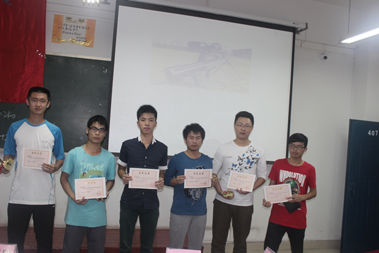 竞争在激烈、紧张的氛围中,选手以及整个赛程在各个坎坷中不断前行。最终,得奖结果公布:刘 森、张现门、罗智文三人获得优秀奖;季军获得者是:董 瑞;亚军获得者是:许远航;冠军获得者是:张翼翔。恭喜他们!