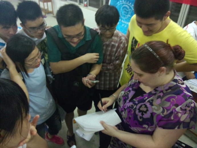 2014年6月5日由英语协会开展的校园英语角活动在北校区食堂二楼如期举行。外语系外教Xanthy出席了本次活动。