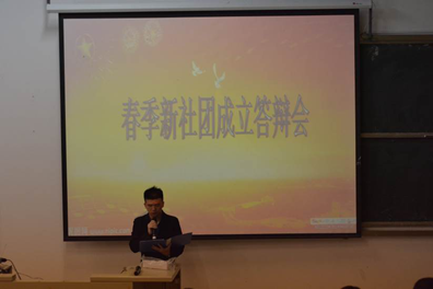 大会在轻松愉悦的氛围中拉开序幕,首先由主持人为大家讲解本次答辩会的意义及活动流程,接着分别由筹备成立的3个社团围绕着各筹备社团的文化发展,社团宗旨,社团目标进行了阐述并展示其文化风采表演和视频。紧接着由青年志愿者联合会、诚远商务社,自强爱心社等社团代表分别对三个筹备社团进行提问,最后由各社团为筹备社团进行投票。整场大会都进行得井然有序。
