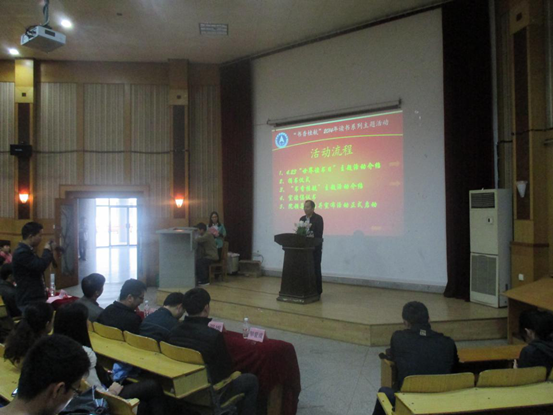 最后由书记致辞,书记进行了慷慨激扬的讲话,让大家学会读书,学会读书的方法,最后宣布“扬中国航天魂 树核心价值观”—— “书香桂航”2014年读书系列活动启动。