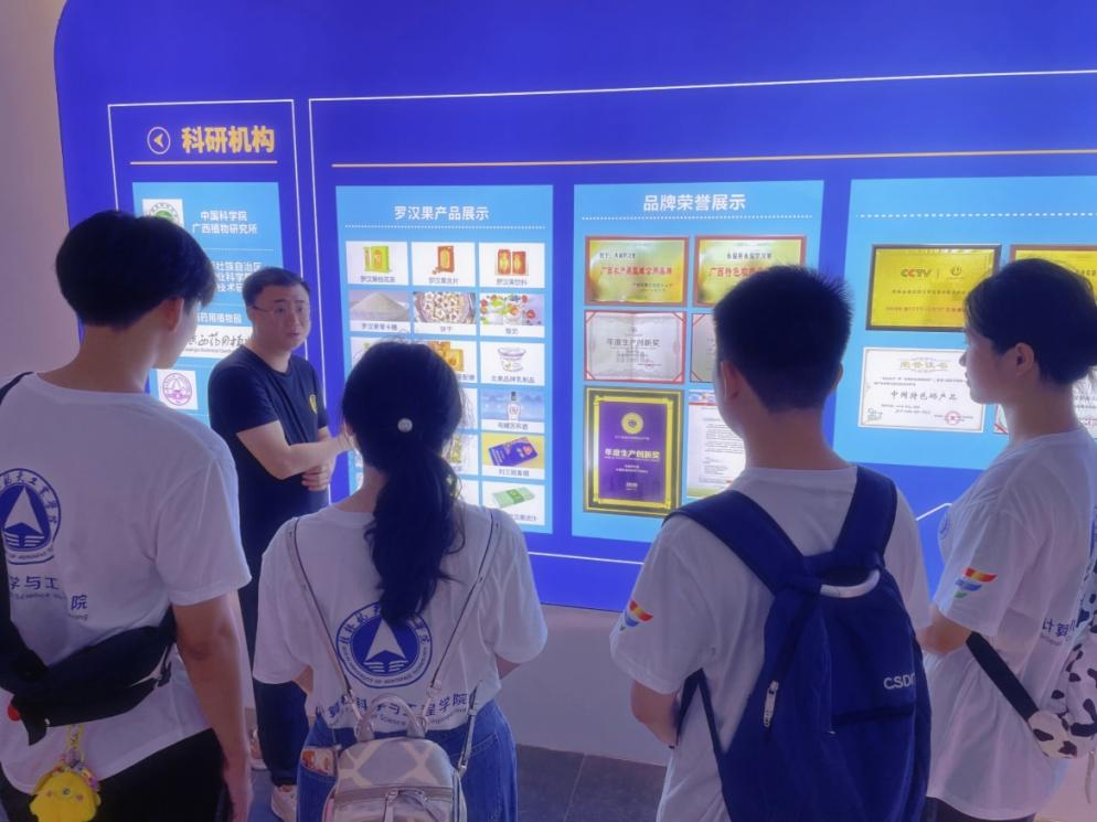 图为颜经理给实践调研团队介绍罗汉果的功能
