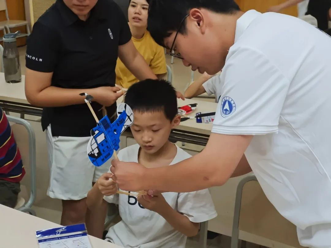 活动现场,“启航书屋”志愿服务团的成员们开设了主题为“两弹一星的传奇”“飞行器的奥秘”和“航天人的奋斗”的系列课程,并带领小朋友们制作飞机模型,课堂氛围其乐融融。同时,课堂中也散发出航天的独特魅力,小朋友们在航天知识的海洋里遨游,开拓眼界,通过理论课程与动手实践相结合的授课方式,激发他们对航天的兴趣和热情也让航天梦的种子在小朋友的心中萌发。