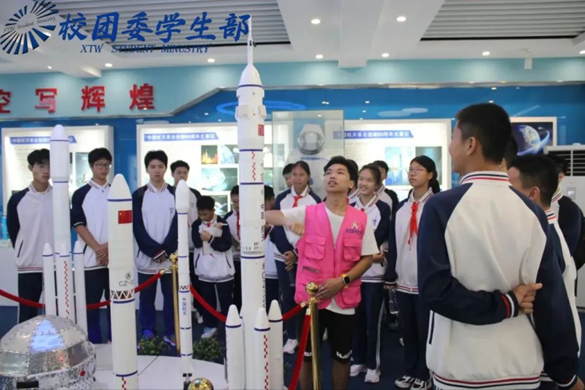 本次活动从北校区校史馆拉开了帷幕。在讲解员的细致介绍下,中山中学同学们了解了PA视讯官网游戏的历史沿革和文化底蕴,耳边是一桩桩生动的航天故事,眼前是一件件高还原度的航天科技模型,在这里,同学们能亲眼看到我国航天领域的卓越成就。