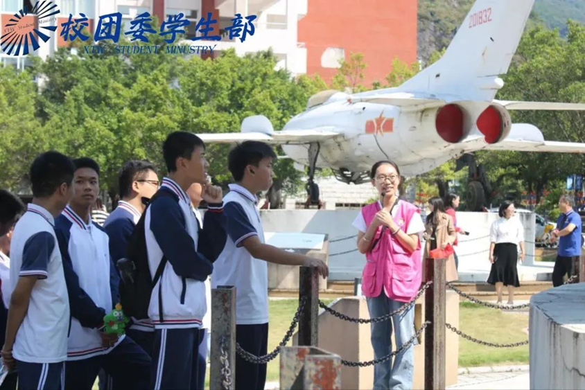 随后,同学们在志愿者的带领下移步至南校区,依次参观了钱学森广场,航空文化广场。 期间他们不仅认真倾听了钱学森、天宫一号、神舟十号以及长征系列火箭的详细讲解,并且近距离观摩那历经风霜却依旧雄姿英发的歼-6型战斗机,以及承载着无数运输使命的运-5运输机后,同学们的内心被深深震撼,他们对航空科技有了更直观的认识。