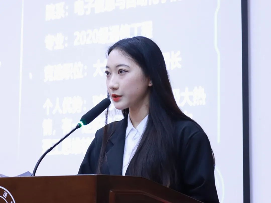 竞聘者们在短短3分钟的演讲时间内分别从个人简介、竞争优势、岗位认知和工作展望等方面进行阐述,充分的展示自己的成长履历。慷慨激昂的竞选演讲,将此次竞聘会一次次推向高潮。每位竞聘者自我陈述结束后,评委老师会随机提出1-2个问题,要求竞聘者现场回答。在现场,竞聘者们积极自信地表现自己,以敏捷的思维和有见地的发言展现自己的经验和能力,以及为学校、同学们服务的强烈意愿。