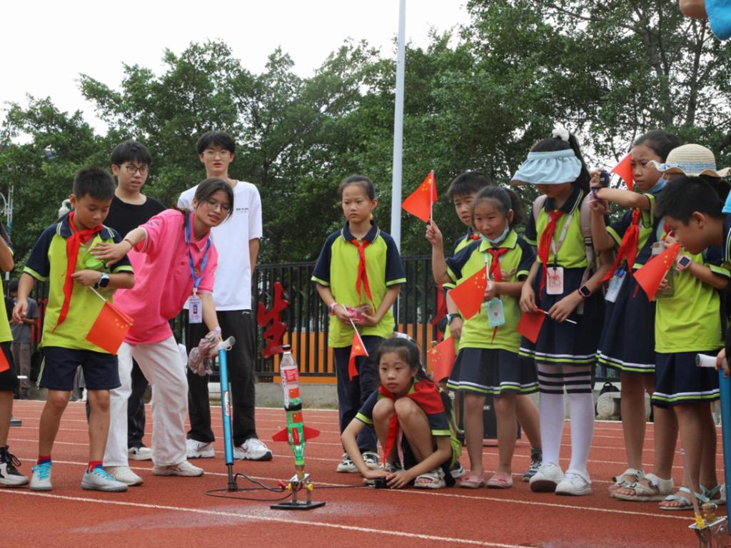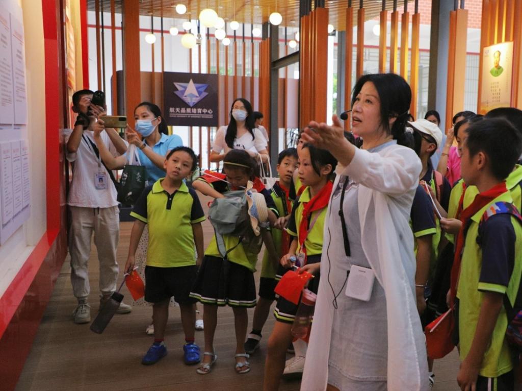 老师和学生们分为A、B、C三组,分别按照不同的路线参观了钱学森广场、运5运输机及歼6战斗机、航天品质中心和北校区的校史馆。在参观过程中,学校相关教师和关心下一代委员会成员作为本次活动的主讲教师,通过讲述“导弹之父”钱学森的故事激发小朋友们的爱国之心、报国之志。通过观看退役运5运输机和歼6战斗机了解不同飞机的构造及用途,进一步讲解我国现阶段的航天事业成就。除了参观PA视讯官网游戏的航空航天文化场所外,工作人员还带领小朋友们到航空航天科普室体验飞机模拟驾驶和制作橡皮筋飞机、观看飞行器表演、体验了“水火箭”的发射,让小朋友们近距离的体验到了航空航天科技的魅力,激发了青少年崇尚科学、探索未知、敢于创新的精神,点燃了小朋友们对航天的憧憬,坚定了为早日实现科技强国贡献自己青春力量的信念,让航天梦、强国梦在青少年心中茁壮成长。