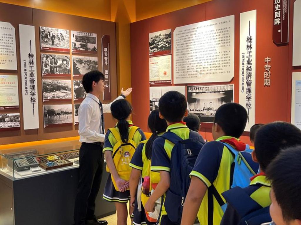图为工作人员带领小朋友们参观校史馆